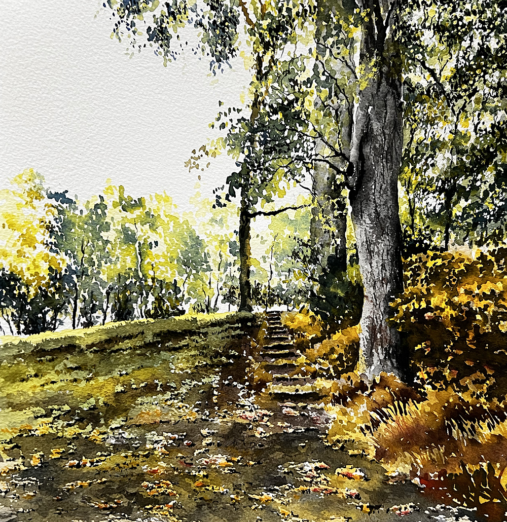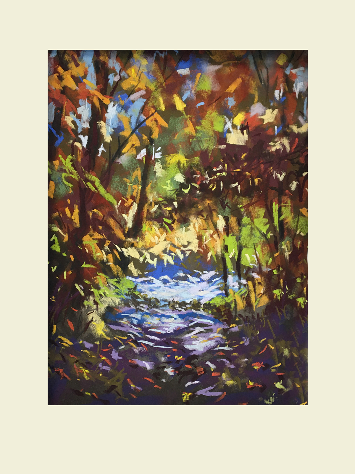 An abstract pastel of the path down to Prebends Bridge in Durham.