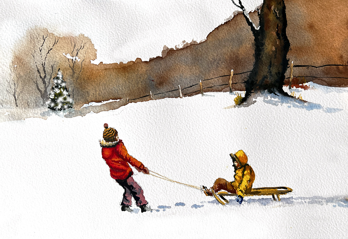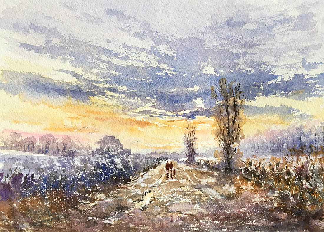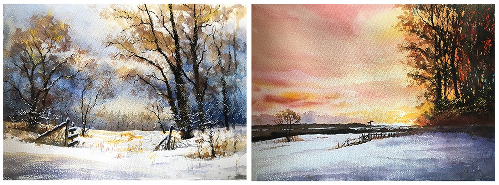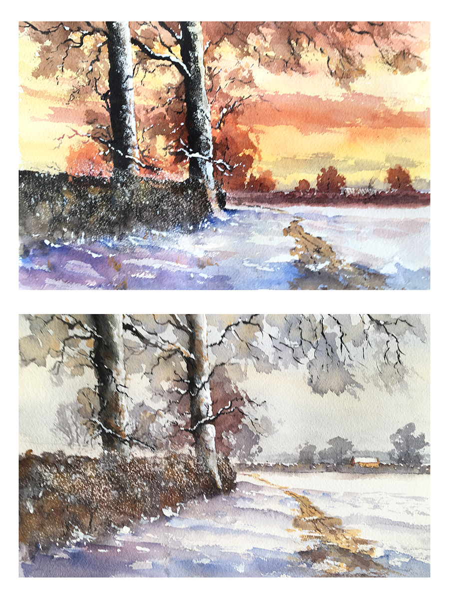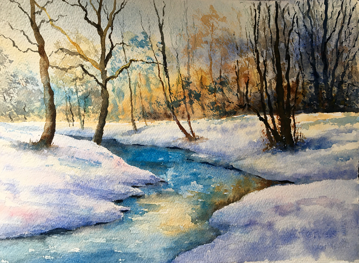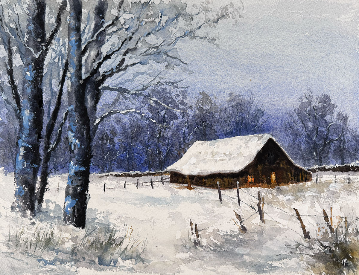 Paint this snow scene in watercolours from an original video lesson from my art classes.