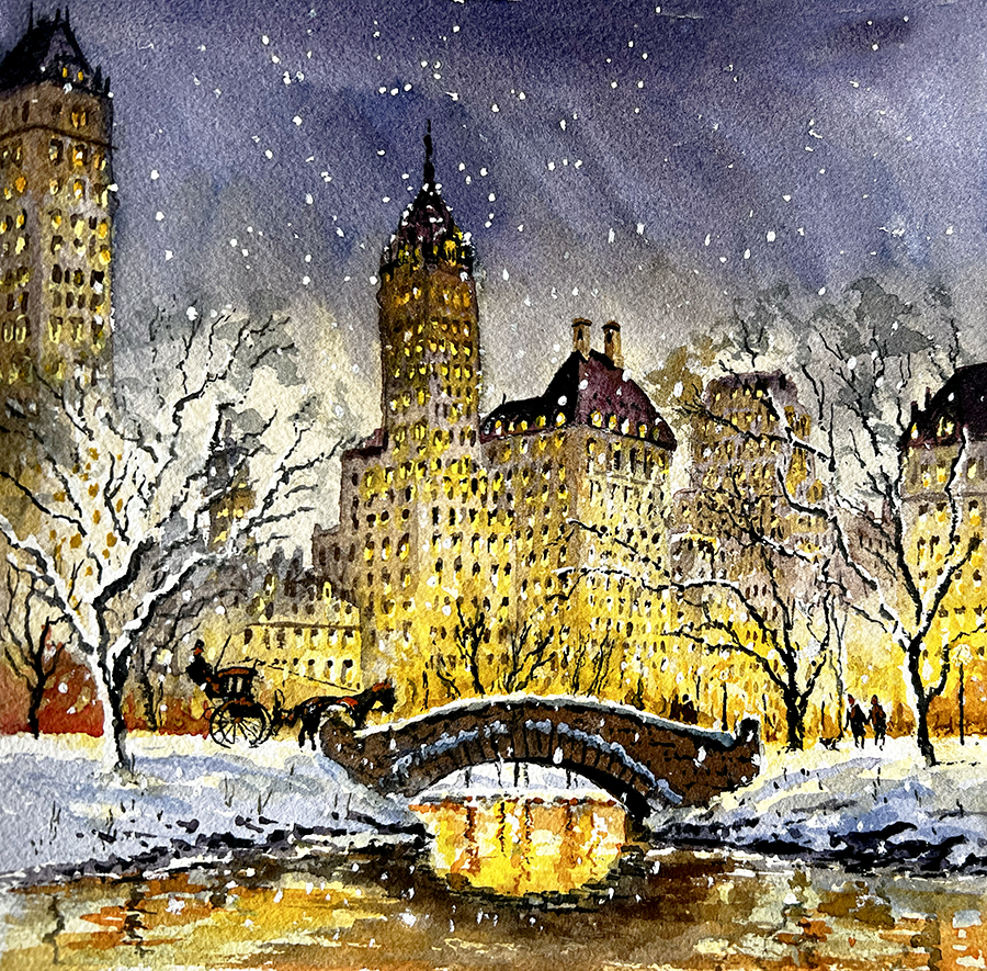 Whether it's a Christmas card in New York or snow in Teesdale, a winter scene is always a great thing to paint.
