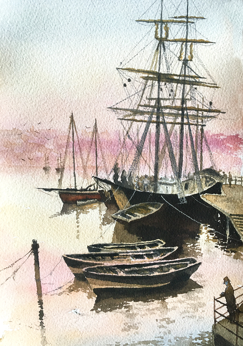 Two versions of this scene on different papers. The darker on is Fabriano smooth and the lighter one is Arches Rough. To finish off with pastels and pencils.